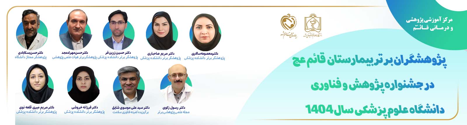 اسامی ۲ تن از اساتید بیمارستان قائم (عج), دکتر محمدحسین ابراهیم زاده (استاد جراحی ارتوپدی) و دکتر علی مرادی (دانشیار مهندسی بافت و عضو هیئت علمی واحد توسعه تحقیقات... ادامه مطلب ...